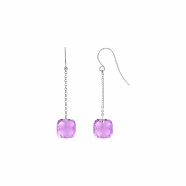 Boucles d'oreilles crochets en or blanc et améthystes
